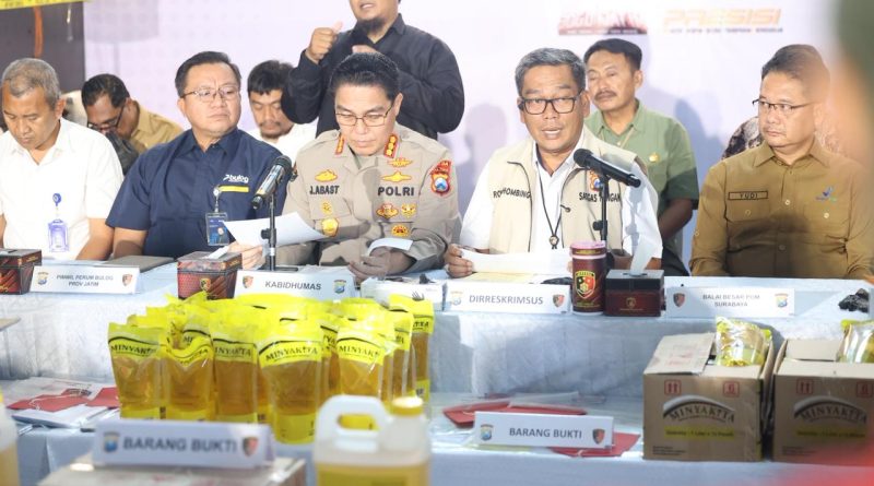 SURABAYA – Direktorat Reserse Kriminal Khusus (Ditreskrimsus) Polda Jatim mengungkap kasus tindak pidana produksi minyak goreng sawit merk MinyaKita ilegal yang tidak memenuhi standar mutu, label, dan takaran.
